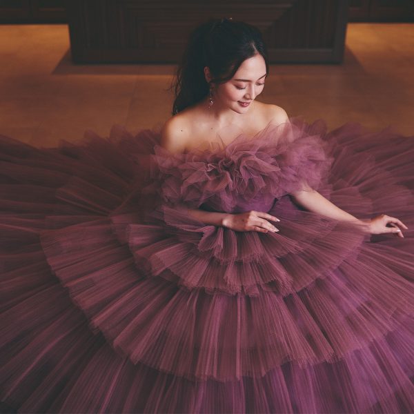 カラードレス whitebell_57579 whitebell_57579 new collection (dress) B-02503 purple filo落ち着いた色味はフィーロ独自に染め上げたオリジナルカラー。 透け感のあるスパンチュールを何枚も重ねたティアードデザインがトレンド感のあるドレス。 ボリューム感がとっても印象です!! 付属のショールは斜めに掛けてワンショル風にもアレンジし、3wayの着方を楽しめます♪ プリーツを掛けたスパークチュールが優しく輝き会場に映えます! PREV NEXT