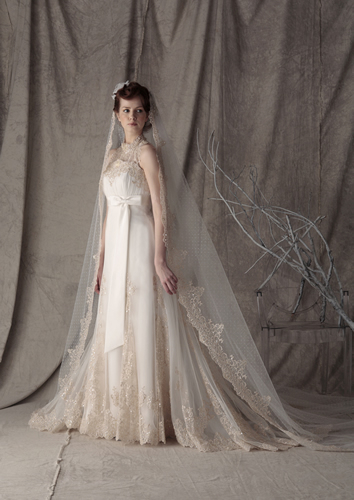 アンティーク感漂う色味のレースが優美なクラシカルドレス。