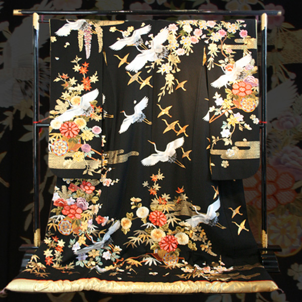 鶴と花々が舞うおめでたい意匠。 白鶴が舞う吉祥文様で長寿と幸福を願う