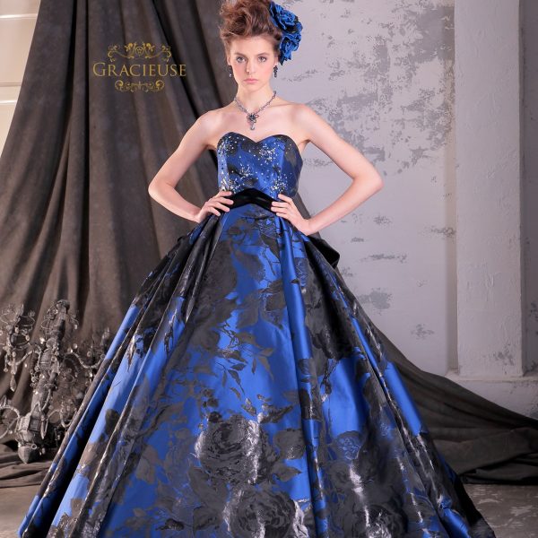 ロイヤルブルー×黒薔薇の気品あるクラシカルドレス。