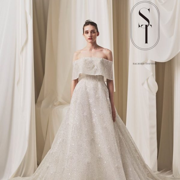 ウエディングドレス ウエディングドレス (dress)SACHIKO TSUTSUI STB-0008 オフホワイト メッシュチュールグリッターに幾何学模様にビージンクされたレースに一目惚れ。このレースを活かすドレスにしたくて、シンプルで透け感のあるデザインです。 背中には小さなリボンでトレンド感をプラス。(6月末入荷) PREV NEXT